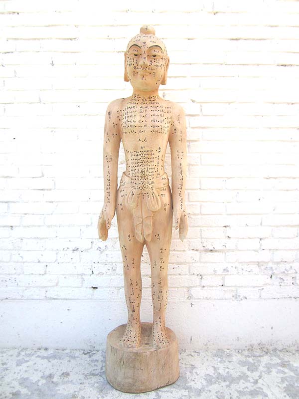 Diese lebensgroße Skulptur des männlichen Körpers dient als wertvolles Lehrmittel für die traditionelle chinesische Medizin und zeigt die Akupunkturpunkte in detaillierter Präzision.