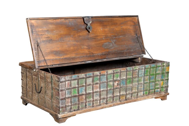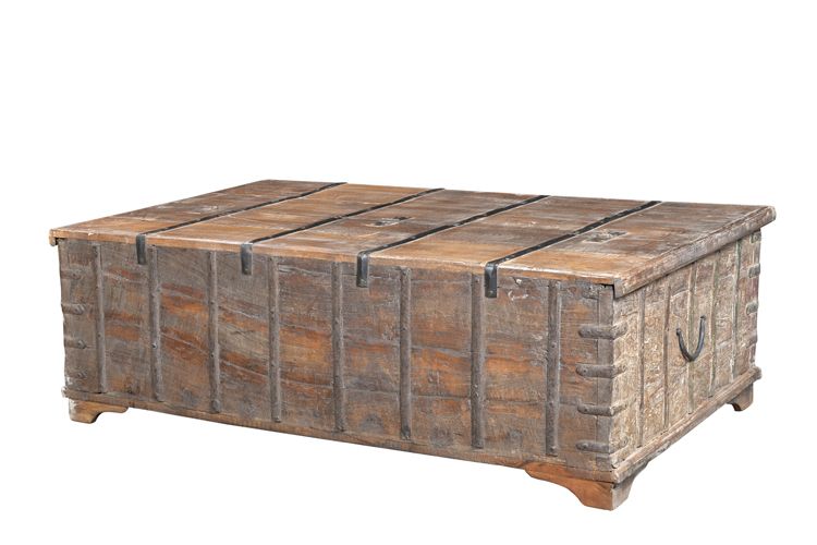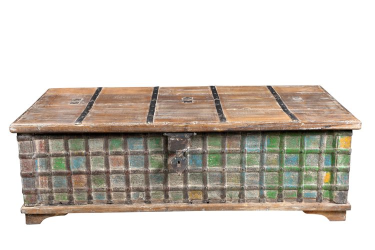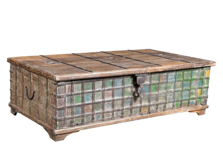Couchtisch – Flach, Cassettenoptik, Altholz, India