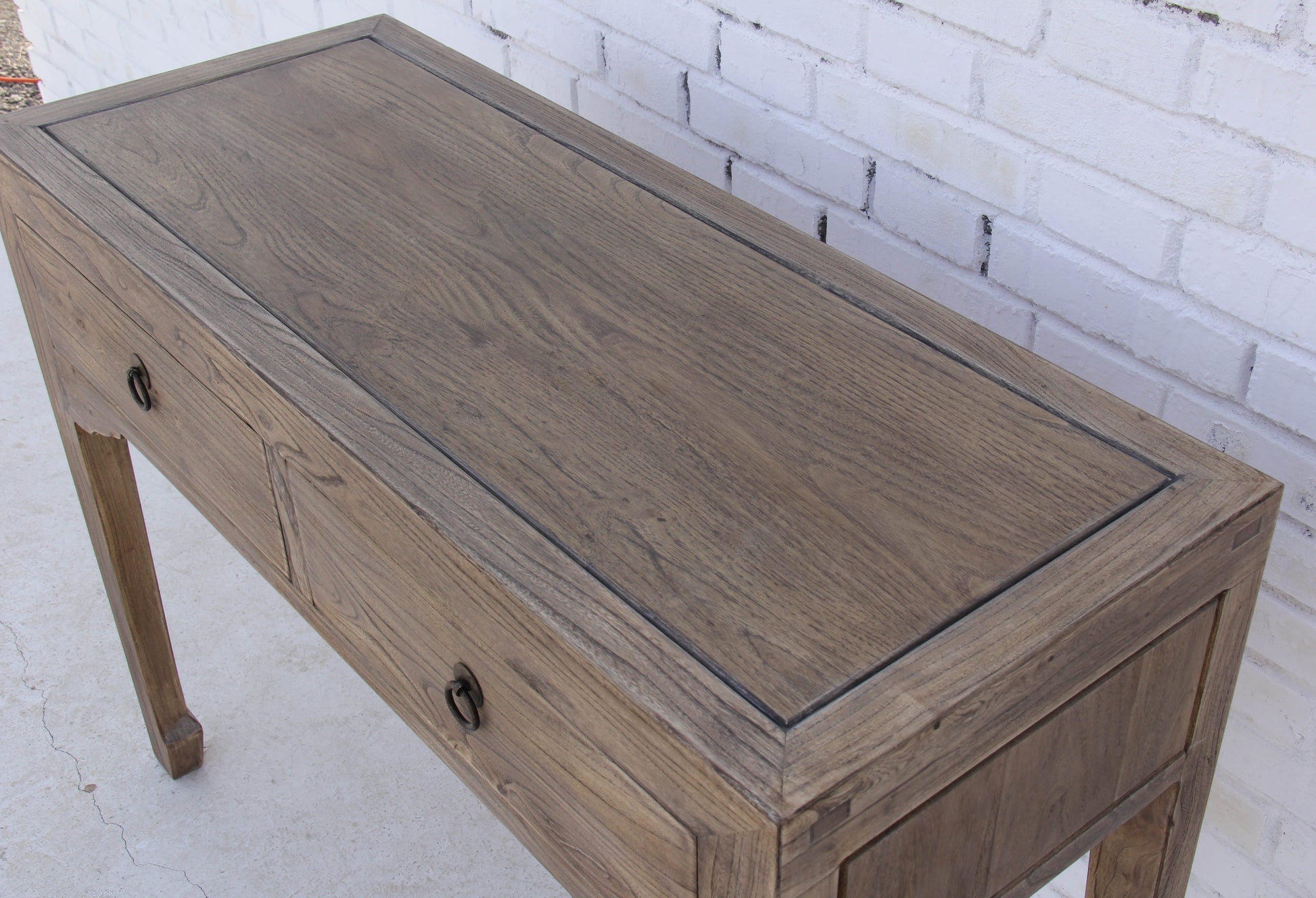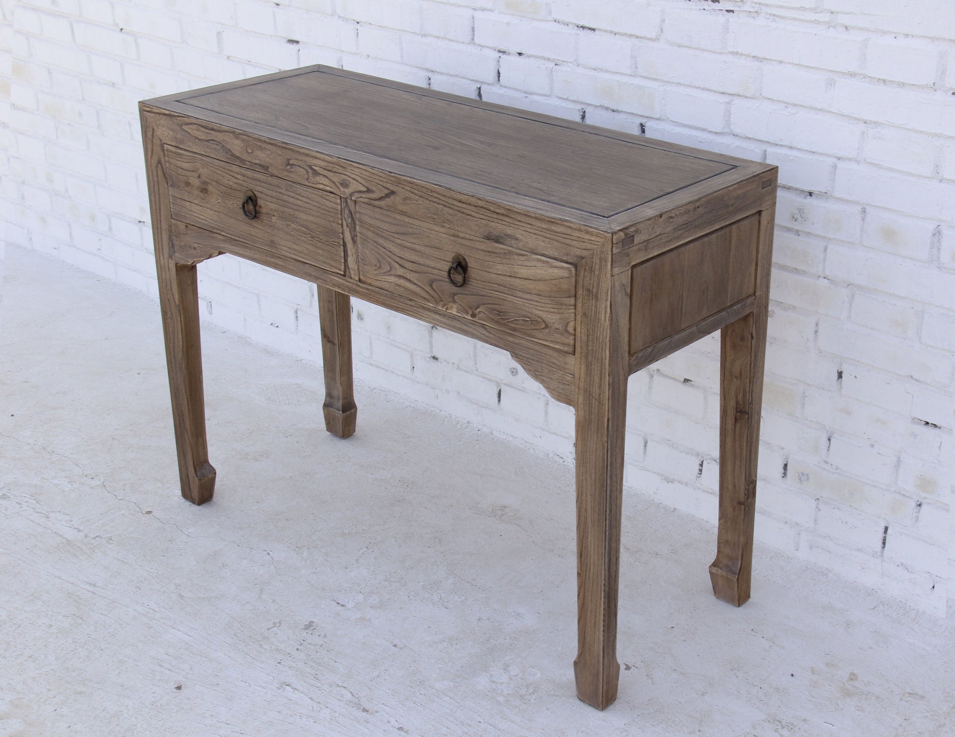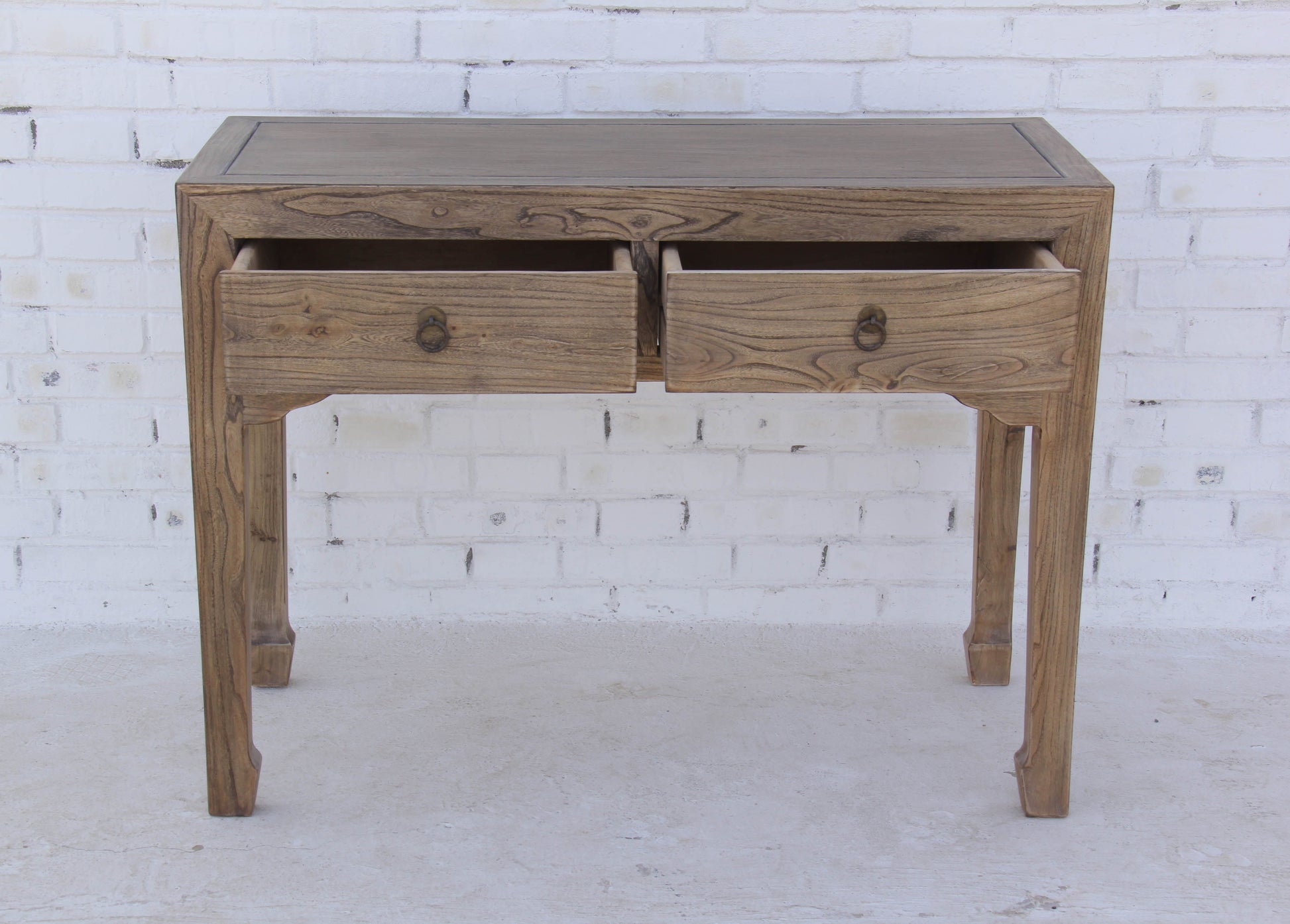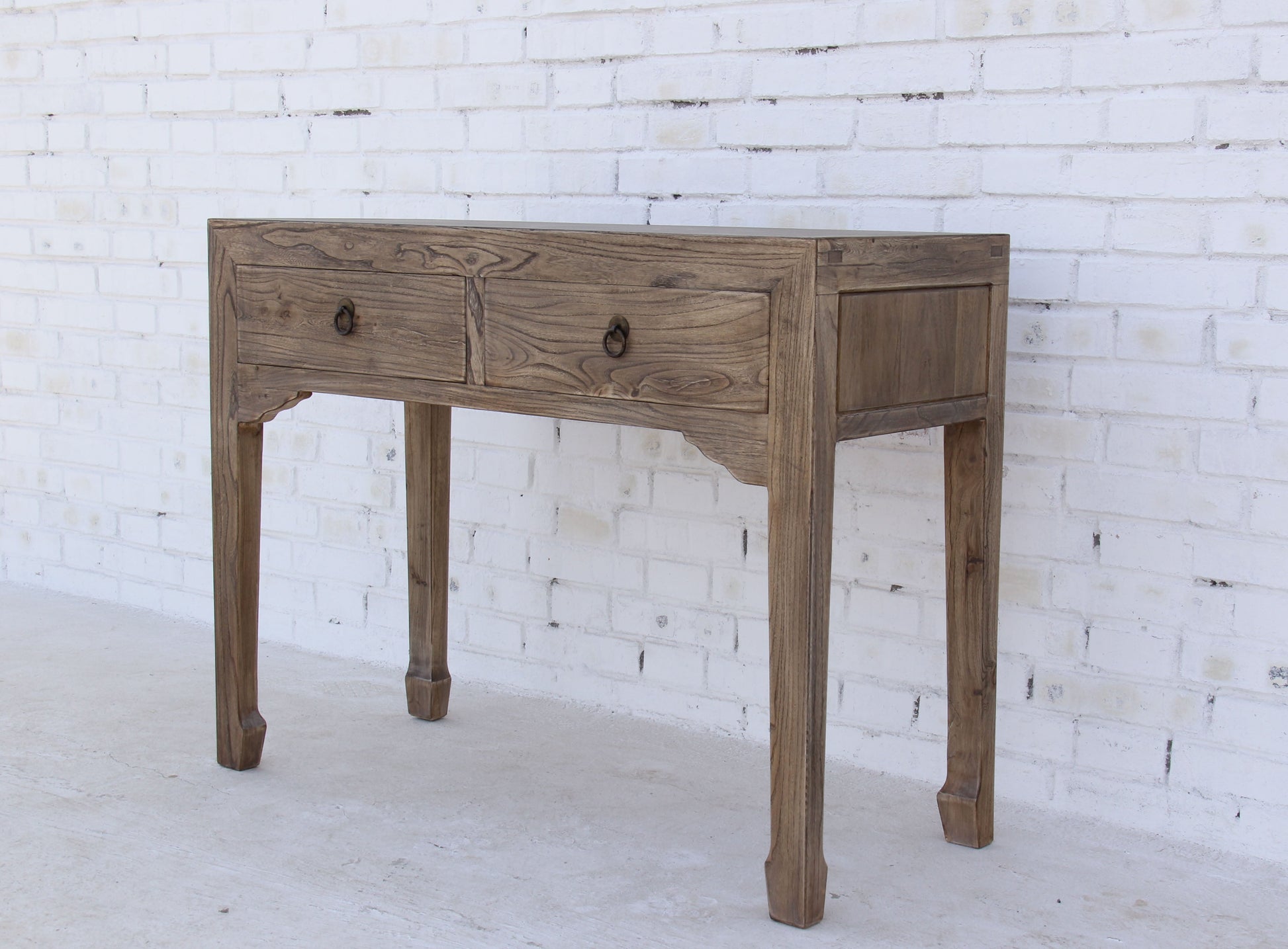 Ein schöner Arbeitsplatz beginnt mit einem außergewöhnlichen Tisch, und dieser Sekretär ist die perfekte Wahl. In aufwendiger Handarbeit hergestellt und mit feinen Details versehen, wird dieser Sekretär zu einem Blickfang in jedem Raum. Die natürliche Maserung des Holzes wurde sorgfältig aufgearbeitet und durch eine Lasur hervorgehoben, wodurch der Sekretär besonders elegant und wohnlich wirkt. Mit zwei Schubläden, die traditionelle Griffe besitzen, bietet das Möbelstück auch praktischen Stauraum.